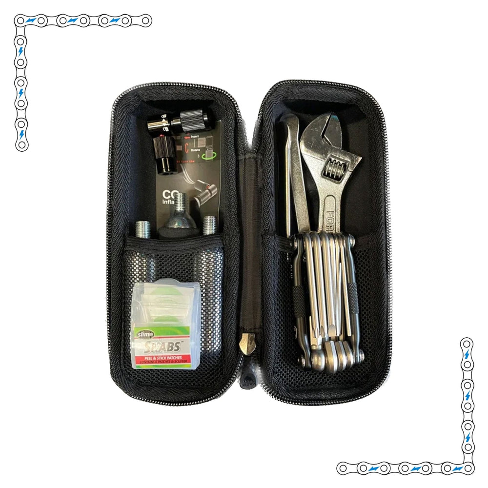 Essential Toolkit for eBike: Riders love it. The E-sential Tool Kit makes every rider feel like a professional as it includes everything you need to keep your bike in tip-top shape -that means no more unnecessary detours due to flat tires or broken chains!