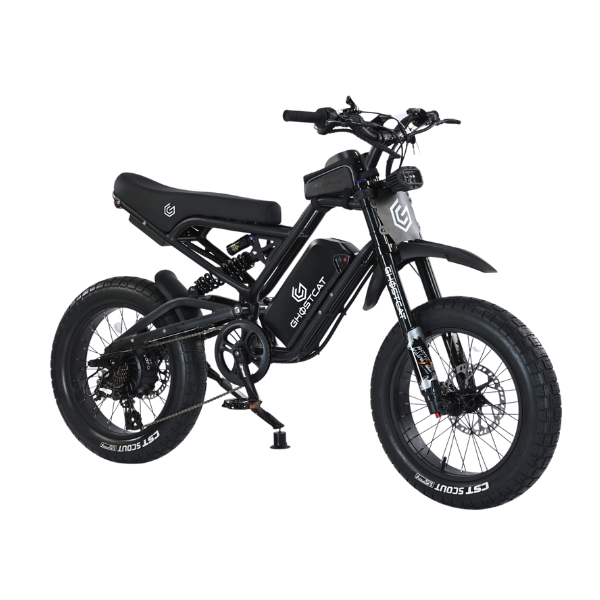 Ghostcat F3X Pro: Introducing the 3rd generation GHOSTCAT F3X all-terrain CST fat tire electric bike specifically engineered to maneuver as a high-performance lightweight motorcycle inspired Dual Sport bike.