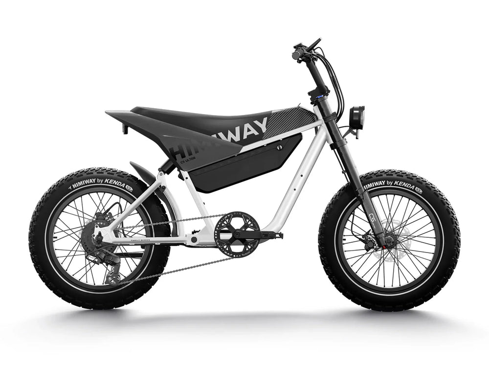 The HIMIWAY C5 Ultra Step Over eBike is a Fat electric bike with a powerful 750 w motor and a long distance 48v 20 ah battery. With 20 inch Fat tires, 7 Speeds and Hydraulic brakes this Electric e-Moto Style eBike ebike is a Class 2, with a top speed up to 20 – 25 mph. An optimal distance of 60-80 miles and charge time of 4 – 6 hrs. This HIMIWAY C5 Ultra Step Over electric bike is 75lbs with a maximum cargo weight of 330lbs. The HIMIWAY C5 Ultra comes in the following colors: White / White Tail,Ink Gray,Blue,White / Black Tail.