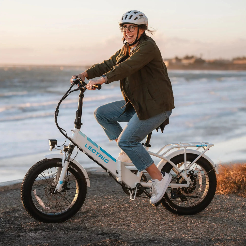 Puncture-resistant Lectric 20” x 3” fat tires with Slime installed to prevent flats. |