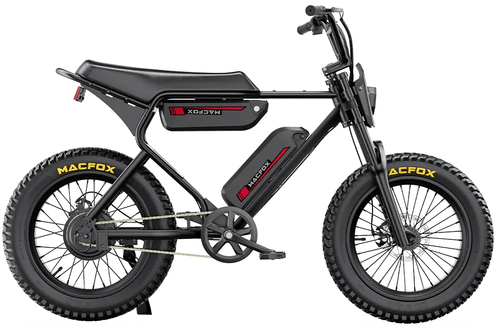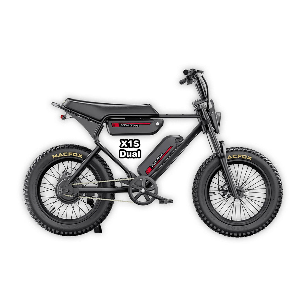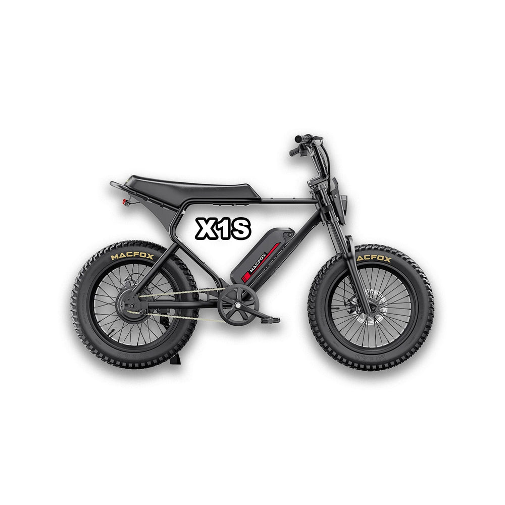 The MACFOX Electric e-Moto Style eBike X1S Commuter offers an exceptional eBike experience designed for versatile use. This powerful electric bike is equipped with a 500 w motor, reaching a peak power of 750 w, delivering reliable performance on every ride. Constructed with a Step Over frame and powered by a 48v battery at 10.4 ah, the Electric Mini Fat Tire eBike provides an impressive range of up to 60+ miles per charge. The Fat Tire 20 inch tires enhance stability and grip, while the Mechanical brakes ensure dependable stopping power. With a top speed of 20 – 25 mph and Single Speed speed options, riders of all levels can enjoy an adaptable riding experience. Weighing only 65lbs lbs, this bike supports a weight of 300lbs, making it an ideal choice for various riding needs. Available in Gloss Black,Brown. Class 1 – 2 compatibility ensures that this eBike meets local regulations for safe, versatile riding.