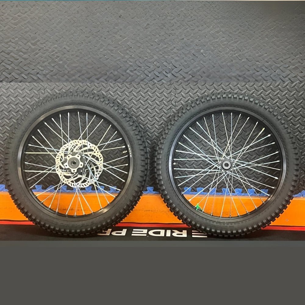| Sets | Throne eMoto Wheel Set Shinko 241 Dual Sport 19"/19" Front & Rear Wheel & Tire Set for Moto Bikes *Does not include rotor or sprocket*, Throne eMoto Wheel Set Shinko 241 Dual Sport 18"/19" Front & Rear Wheel & Tire Set for Moto Bikes *Does not include rotor or sprocket* |